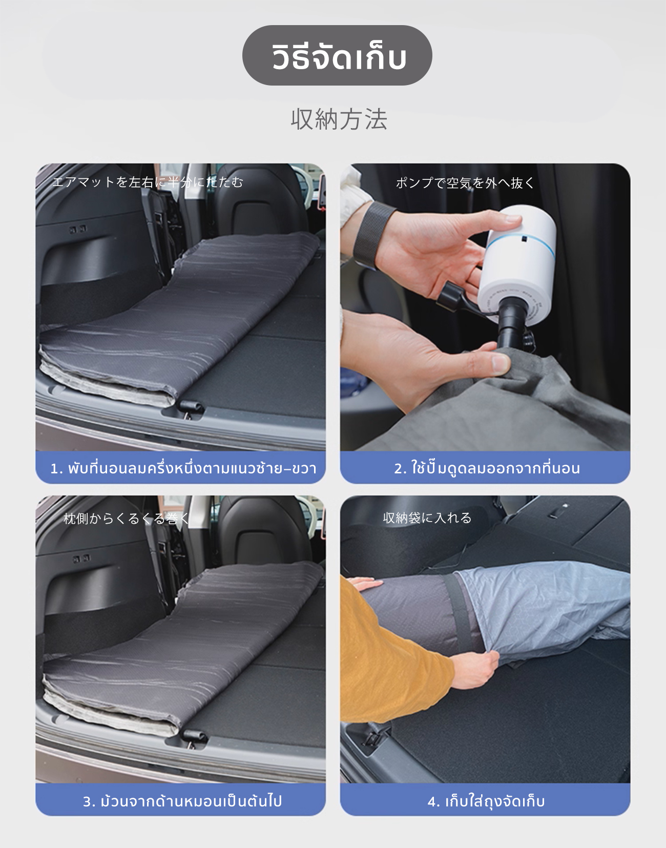 • ใส่ลงในกล่องเก็บของและวางไว้ในกระโปรงหน้ารถหรือท้ายรถได้อย่างง่ายดาย