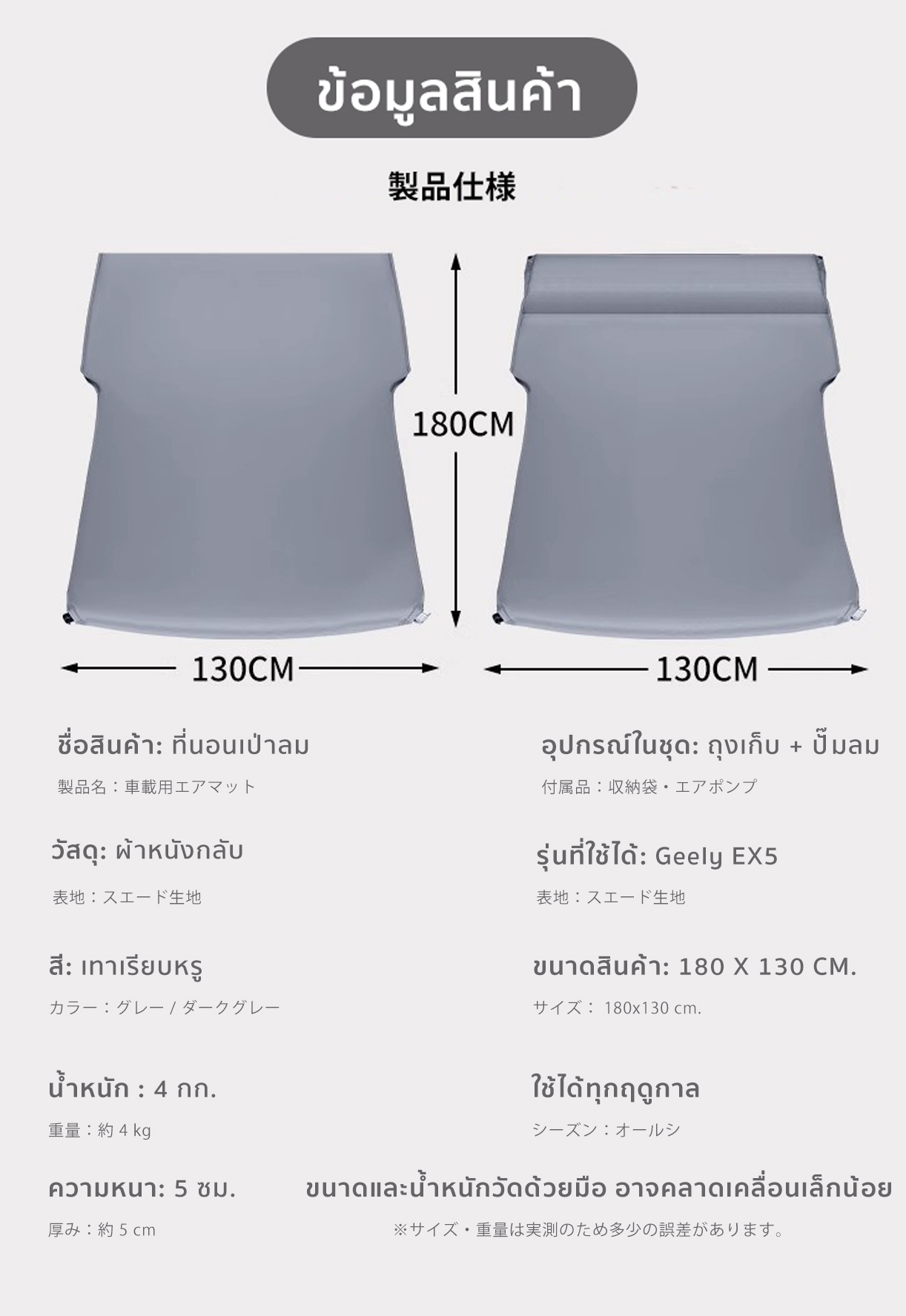 The Camp สำหรับรถรุ่น Geely EX5 ที่นอนเป่าลมอัตโนมัติ เก็บง่าย พร้อมใช้ทุกทริป