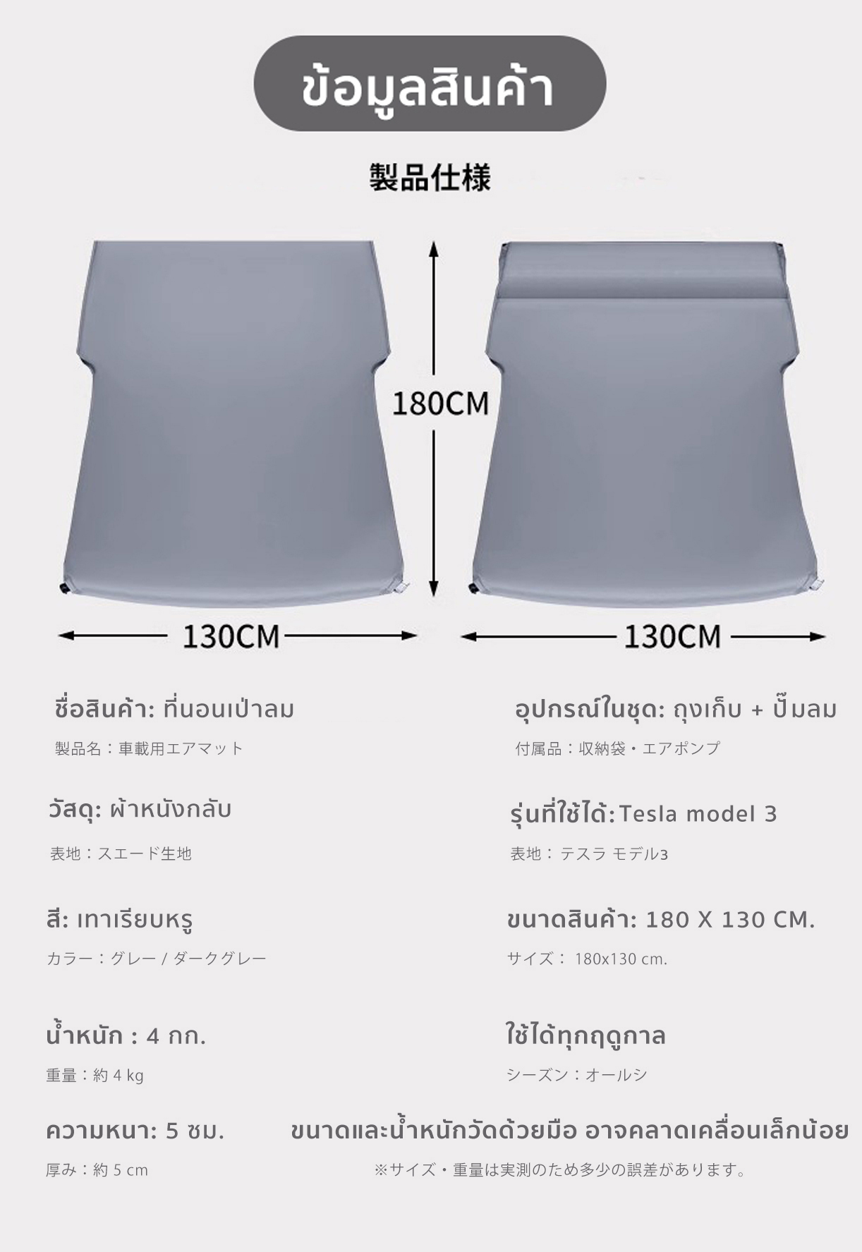 The Camp สำหรับ Tesla Model 3 ที่นอนเป่าลมอัตโนมัติ หนานุ่ม พื้นที่นอนกว้าง พร้อมพักผ่อน
