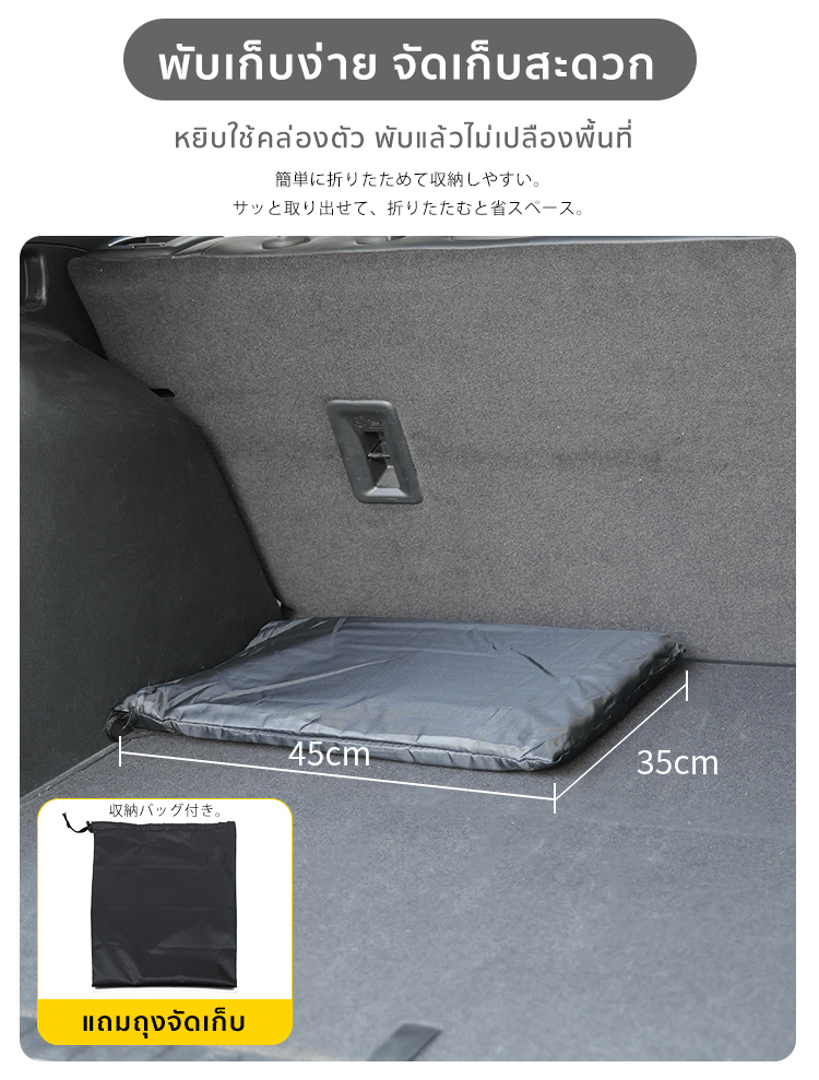 • พับเก็บแบนๆ ประหยัดพื้นที่เก็บในรถ เหมาะพกไปทุกทริป