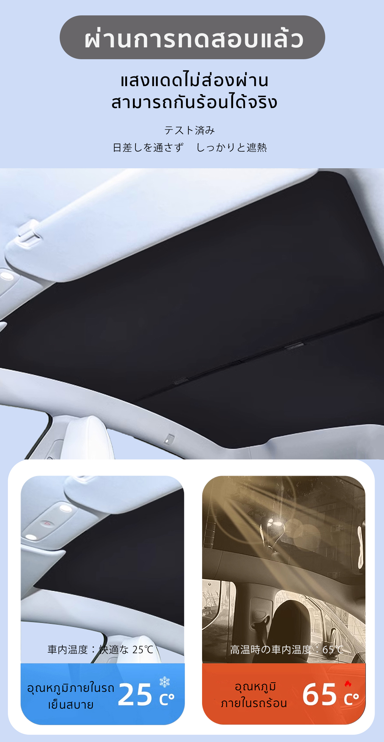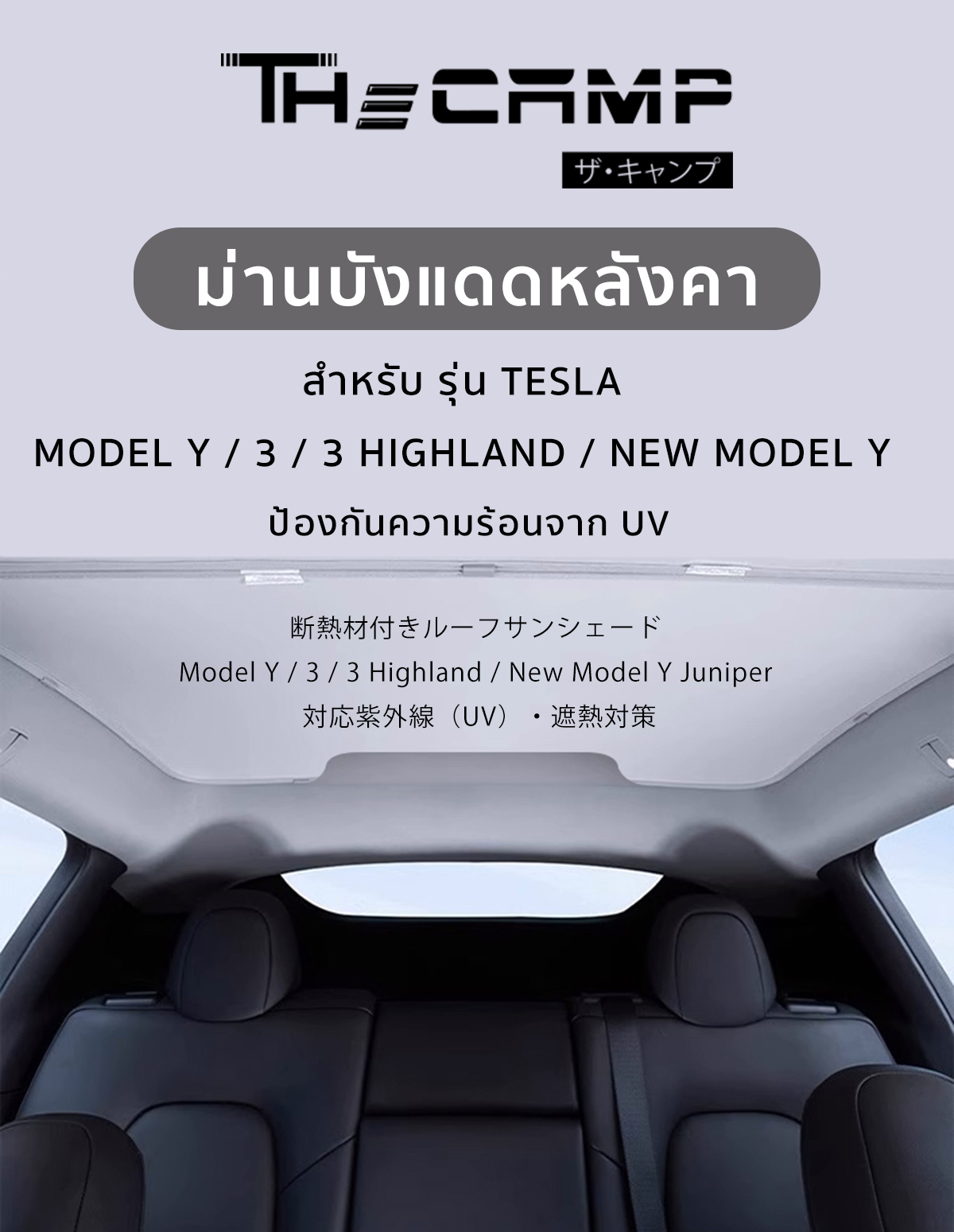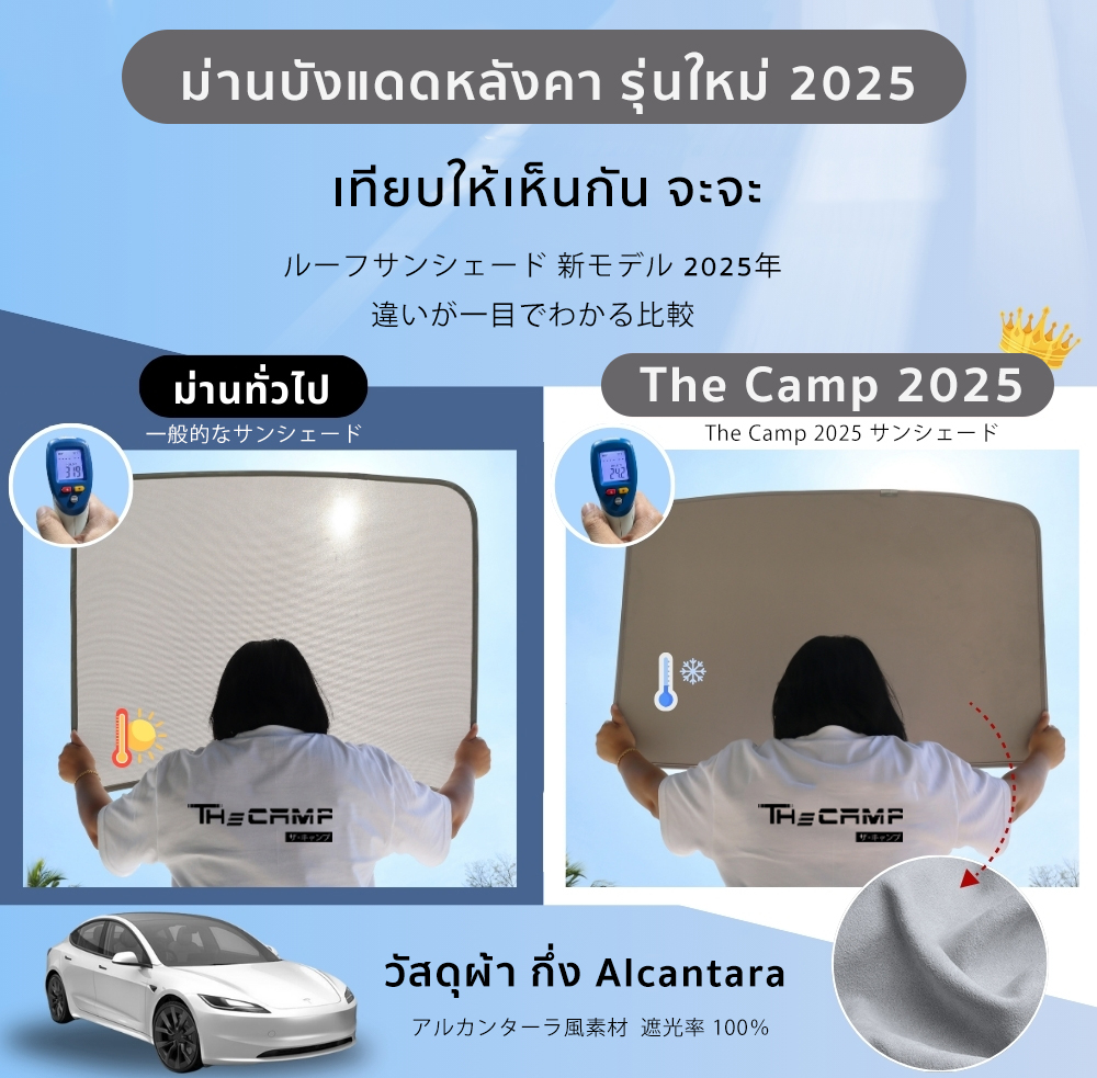The Camp ม่านบังแดดหลังคา สำหรับรถ Tesla ทุกรุ่น ฉนวนกันความร้อน ติดตั้งง่าย ไม่ต้องประกอบวัสดุ